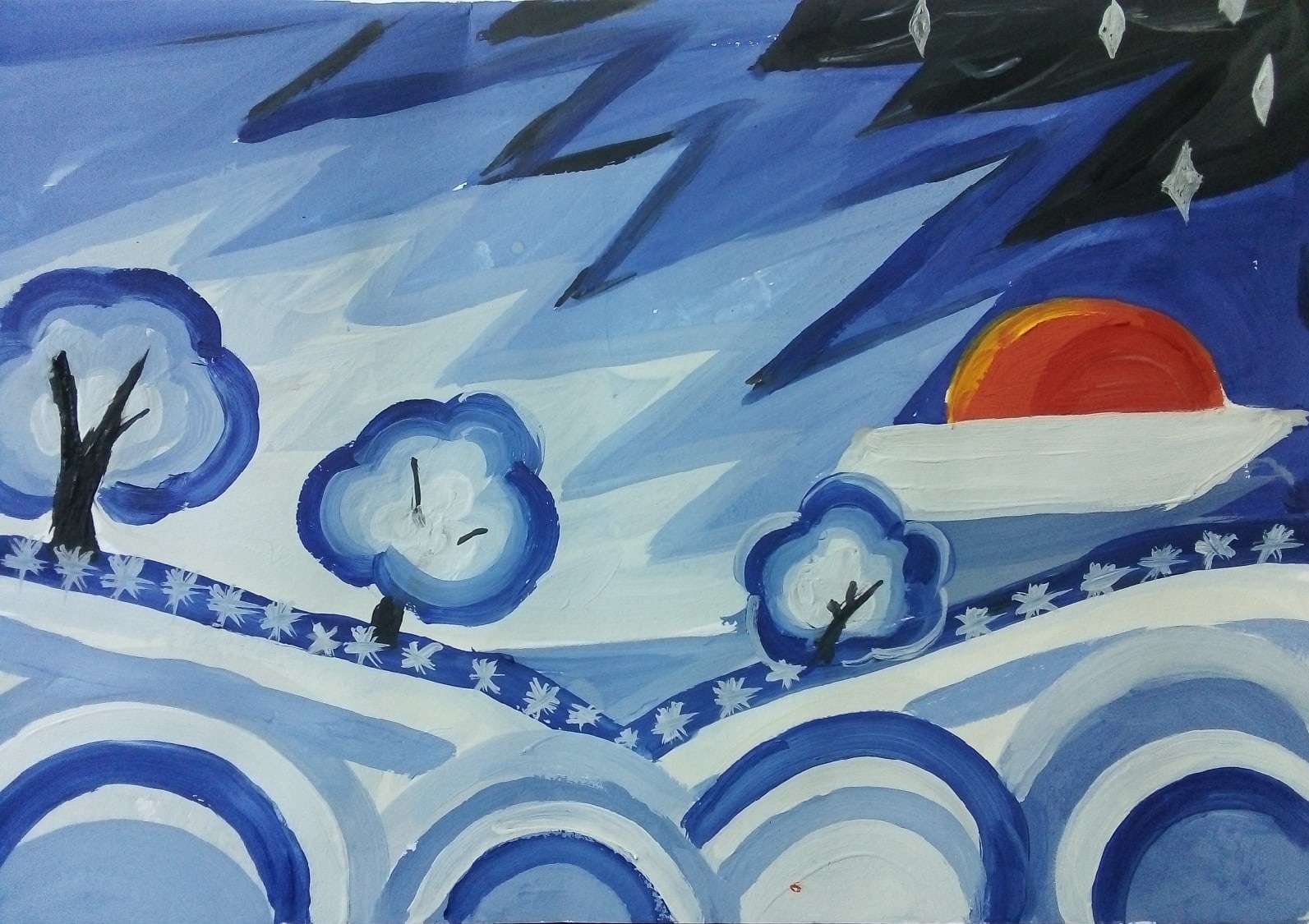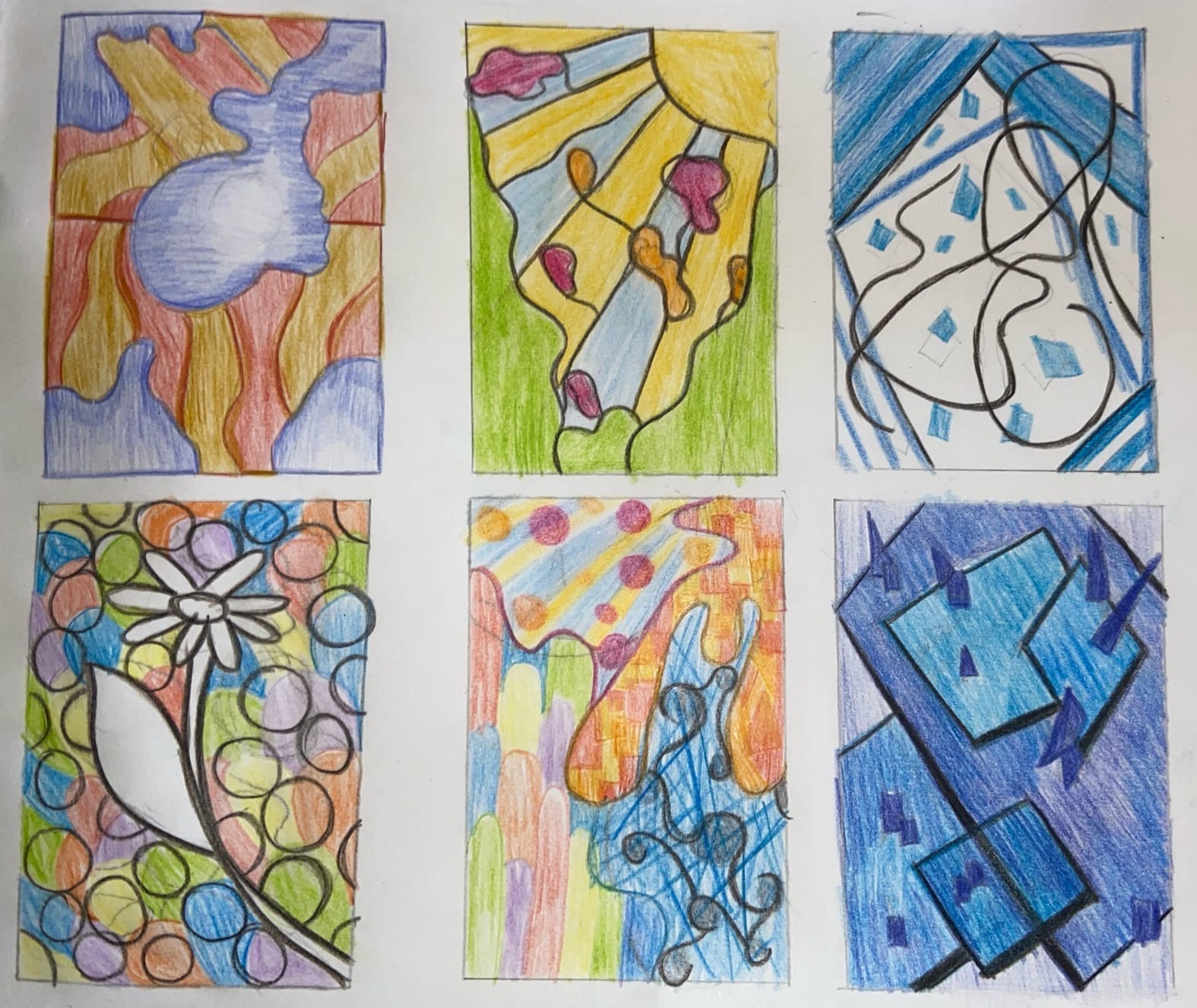 Участники занятия имели возможность закрепить полученные знания, выполнив абстрактную или ассоциативную композицию «Времена года» под руководством педагога. Ученики школ проявили высокий уровень заинтересованности в практической работе, создав за короткий срок самобытные авторские композиции. В ходе выполнения работы Нина Николаевна постоянно консультировала участников практикума, давала отзывы о созданных ими композициях.