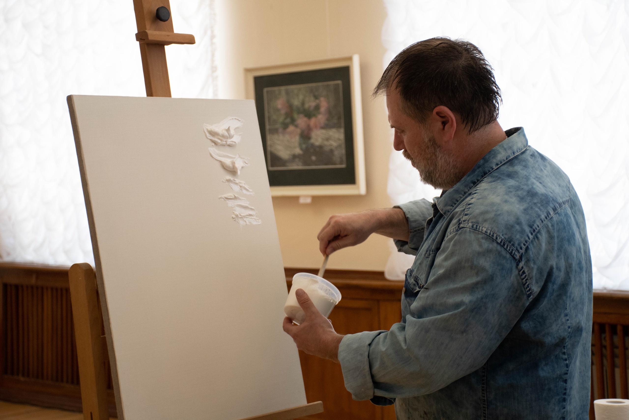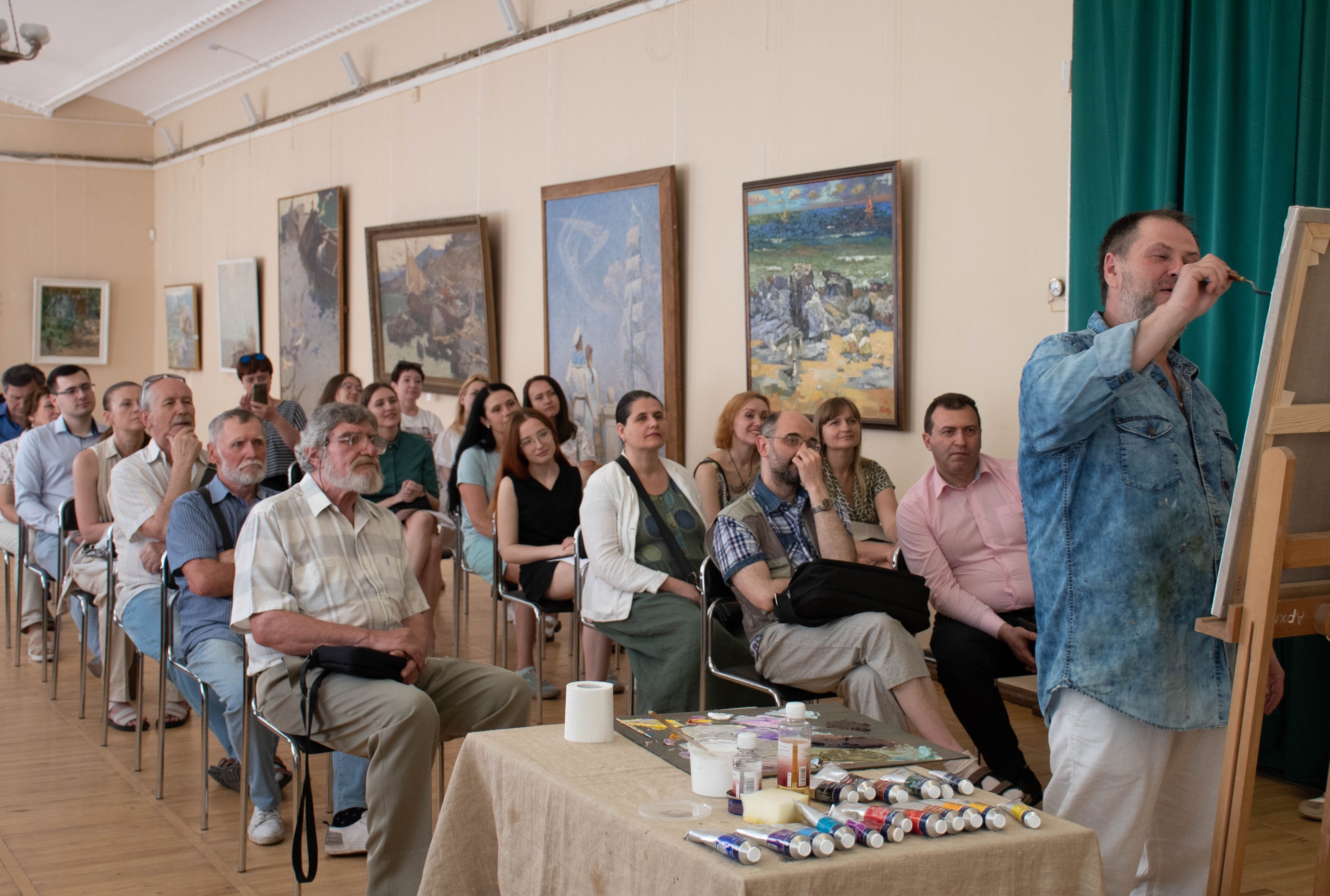 В процессе беседы Дмитрий Кустанович делился собственными приёмами работы в технике масляной графики и демонстрировал привезённые репродукции своих работ. В рамках заявленного мастер-класса художник создал перед собравшейся аудиторией завершенное полотно в авторской декоративной манере. Каждый из присутствующих мог задать художнику интересующий вопрос, а после завершения мастер-класса попробовать собственные силы в данной технике.