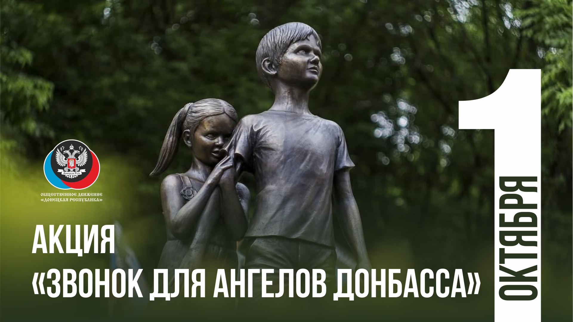 Чтобы почтить память погибших детей и напомнить всему миру о преступлениях Украины против мирного населения Общественное Движение «Донецкая Республика» инициировало акцию «Звонок для Ангелов Донбасса», которая проходит 1 октября в социальных сетях. Для участия в акции нужно разместить на личных аккаунтах в социальных сетях иллюстрацию с указанием хэштега #ЗвонокдляАнгеловДонбасса. Можно дополнить фото, комментарием, воспоминанием о трагических событиях или информацией о погибших детях Донбасса.