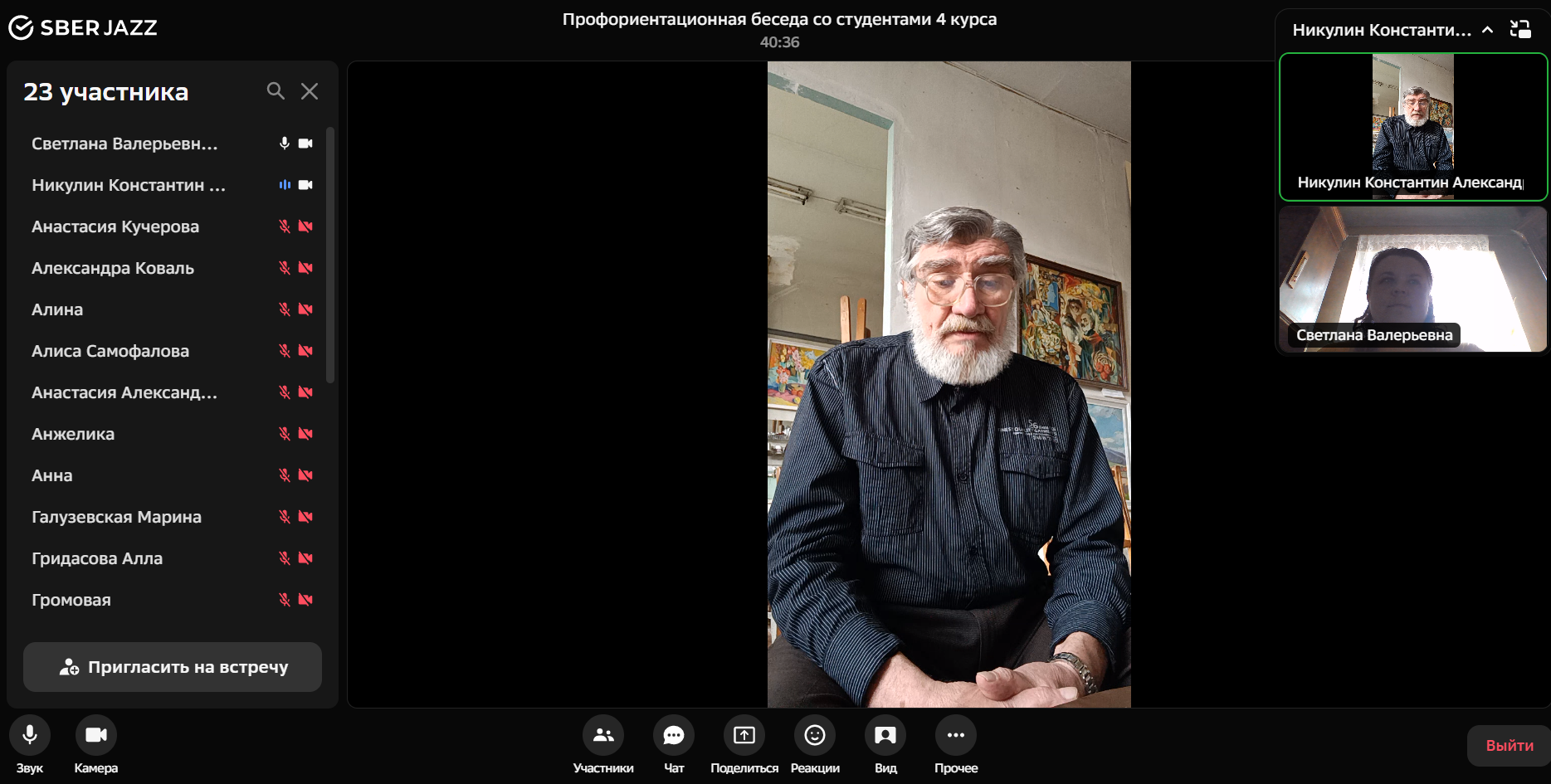 22 апреля 2023 года старшие преподаватели кафедры Дизайна и art-менеджмента Экономического факультета Донецкого государственного университета Никулин К.А. и Агабекян М.Х. провели профориентационную беседу для студентов 4 курса Донецкого художественного колледжа. Беседа проходила в дистанционном формате на платформе SberJazz.