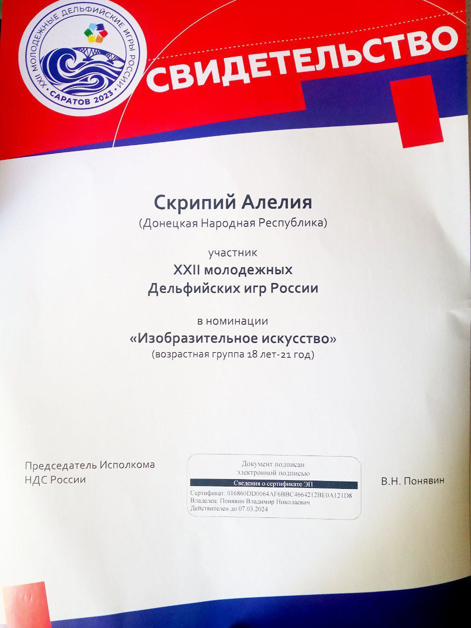 СТУДЕНТКА ДОНЕЦКОГО ХУДОЖЕСТВЕННОГО КОЛЛЕДЖА АЛЕЛИЯ СКРИПИЙ ПРИНЯЛА УЧАСТИЕ В ДЕЛЬФИЙСКИХ ИГРАХ