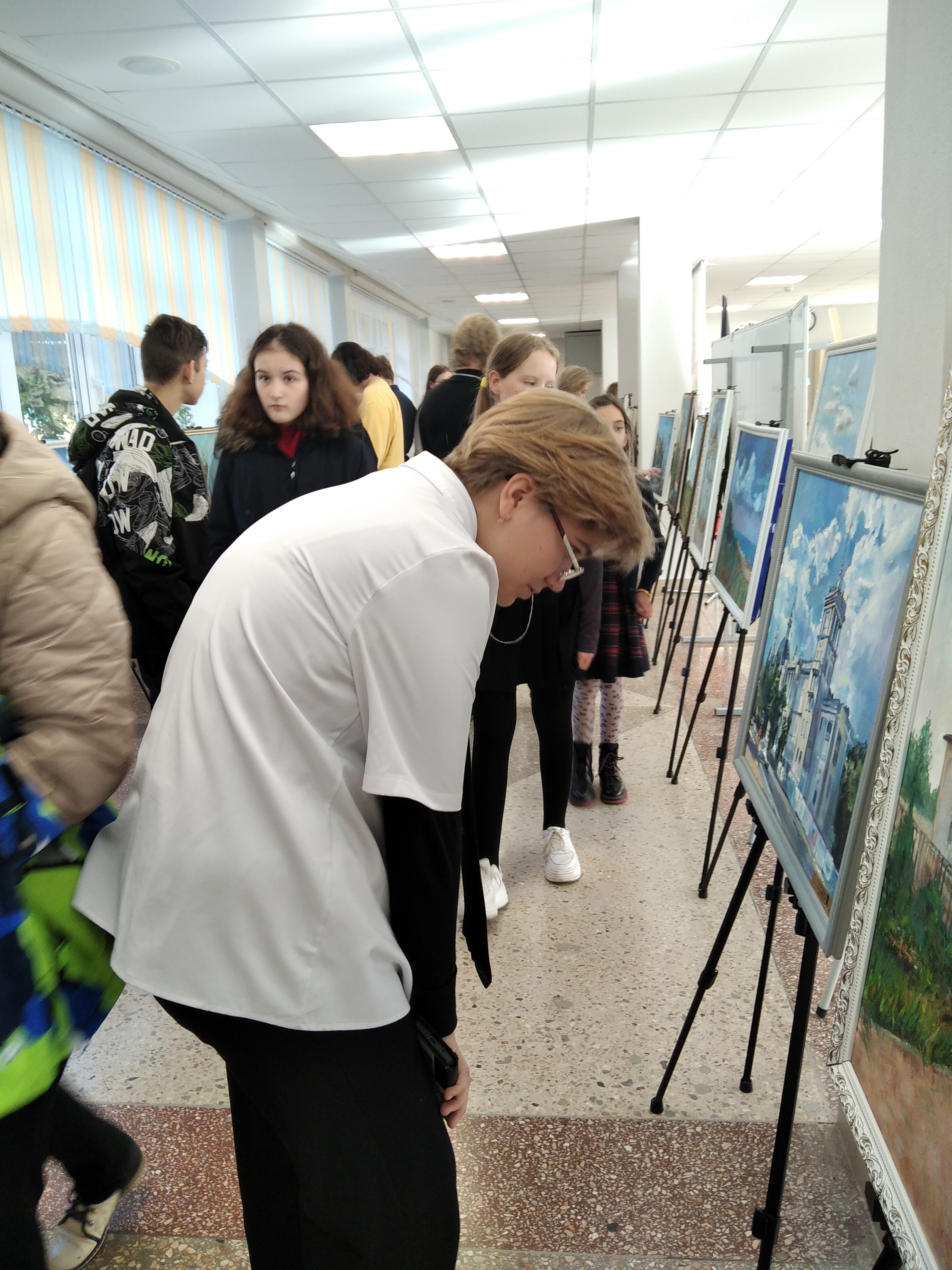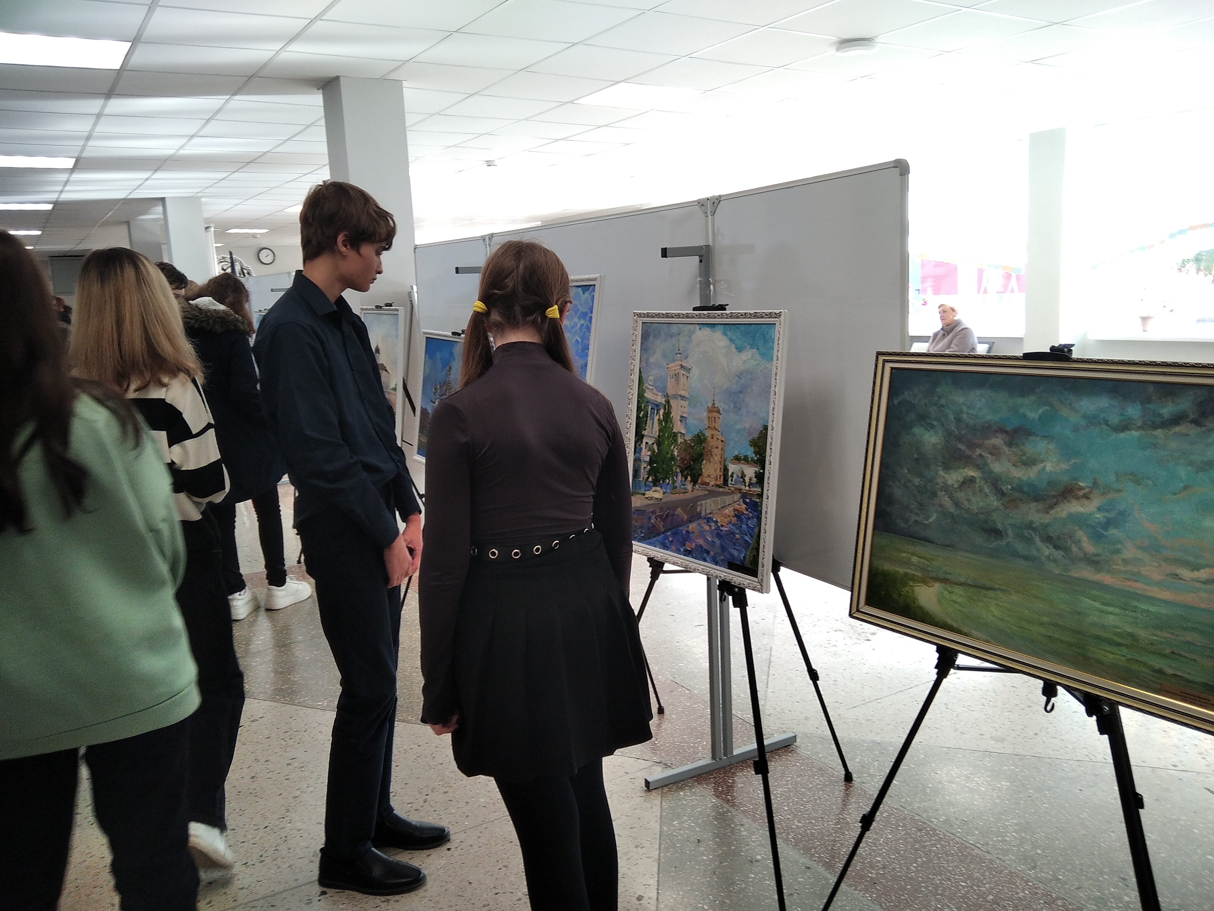 С юными посетителями выставки педагоги Донецкого художественного колледжа Ивахненко В.А. и Петрикина С.В. провели профориентационную беседу о значимости пленэра в творчестве художника, о возможностях и перспективах обучения специальностям «Живопись» и «Дизайн», о востребованности художественных профессий в современном мире.