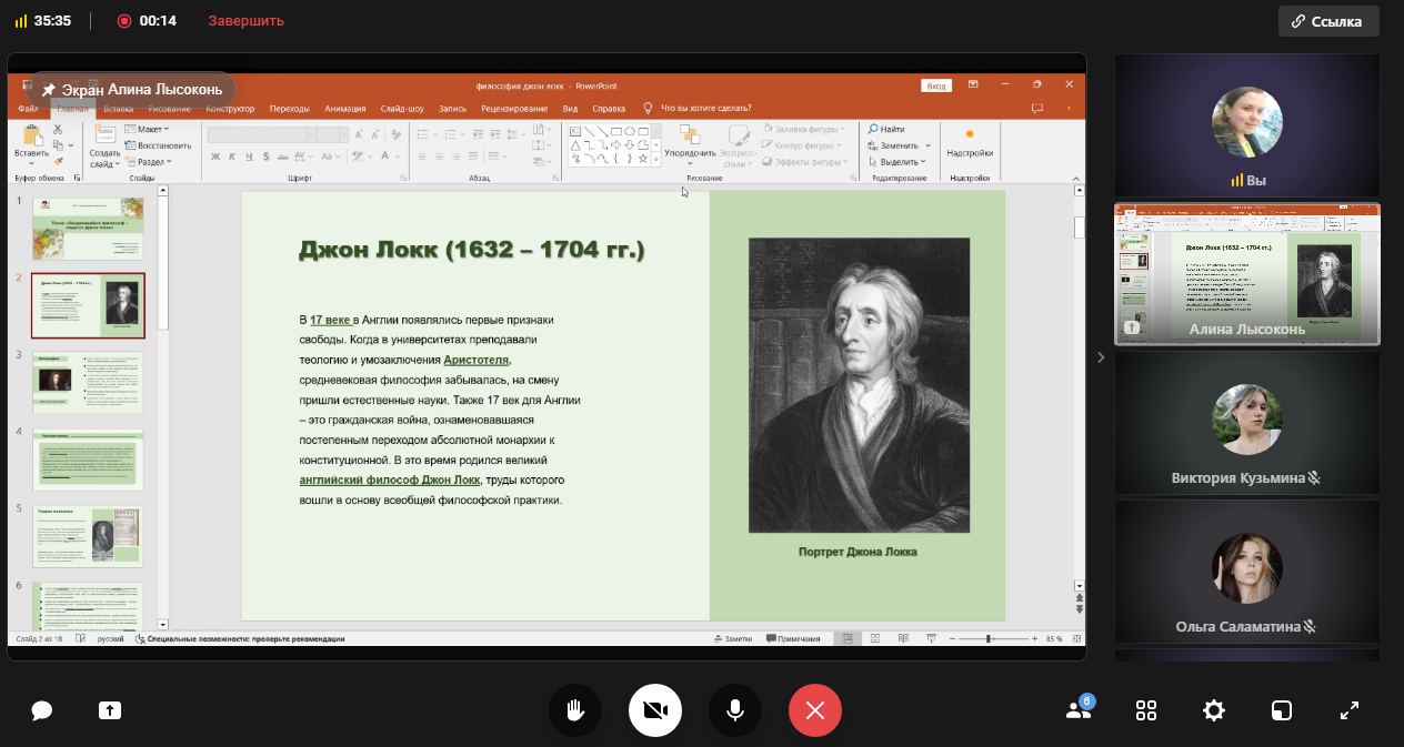 В рамках Года педагога и наставника состоялся семинар «Познай самого себя: выдающиеся философы-педагоги». Участники семинар, студенты 4 курса, под руководством преподавателя Петрикиной С.В., изучили биографии, философское наследие и педагогические идеи выдающихся мыслителей. Иммануил Кант и Джон Локк, Сергей Гессен и Лев Выготский, Герберт Спенсер и Жан Жак Руссо, а также Аристотель, Конфуций и другие величайшие умы проникли в тайны не только мироздания, но и человеческой души. Сама педагогика всю историю своего развития была тесно связана с философией как источником понимания природы человека, а великие педагогические концепции достигали уровня философских обобщений.