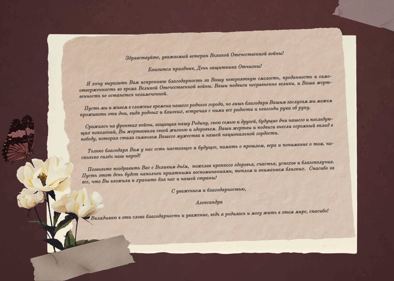 А непосредственно в День защитника Отечества студенты представили видеопоздравления и тематические художественные композиции к празднику.