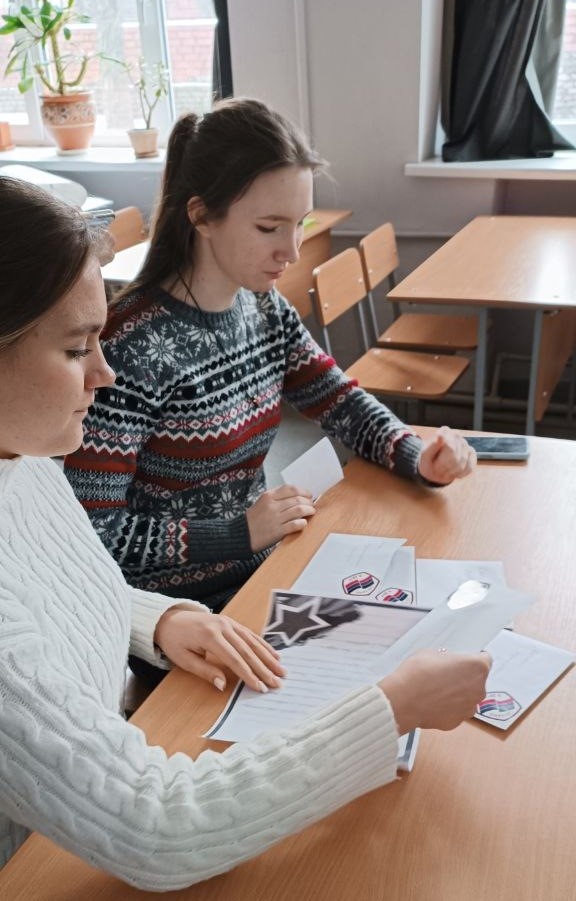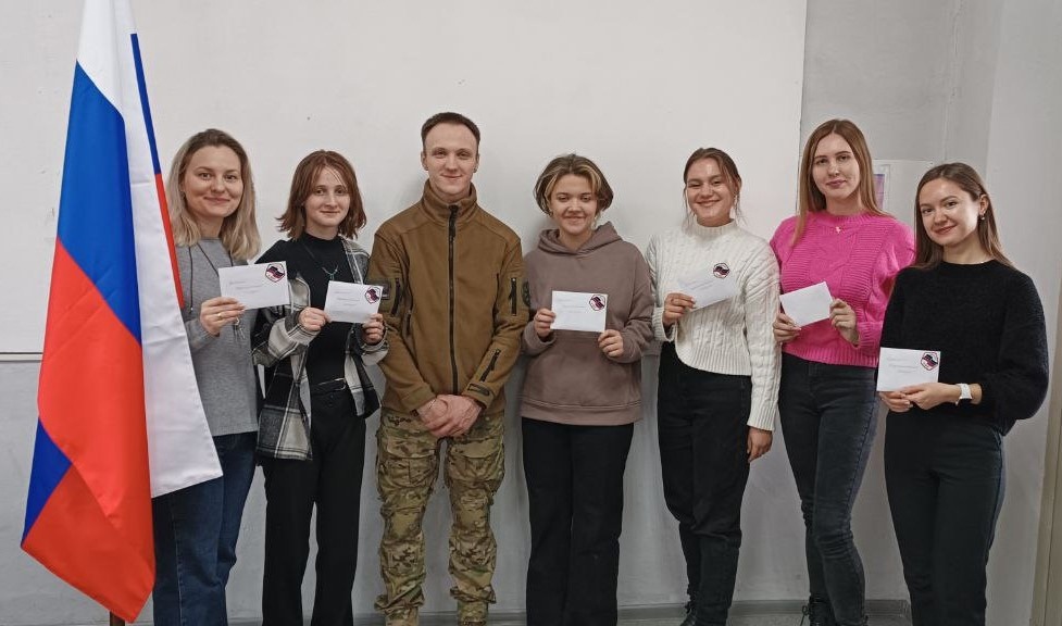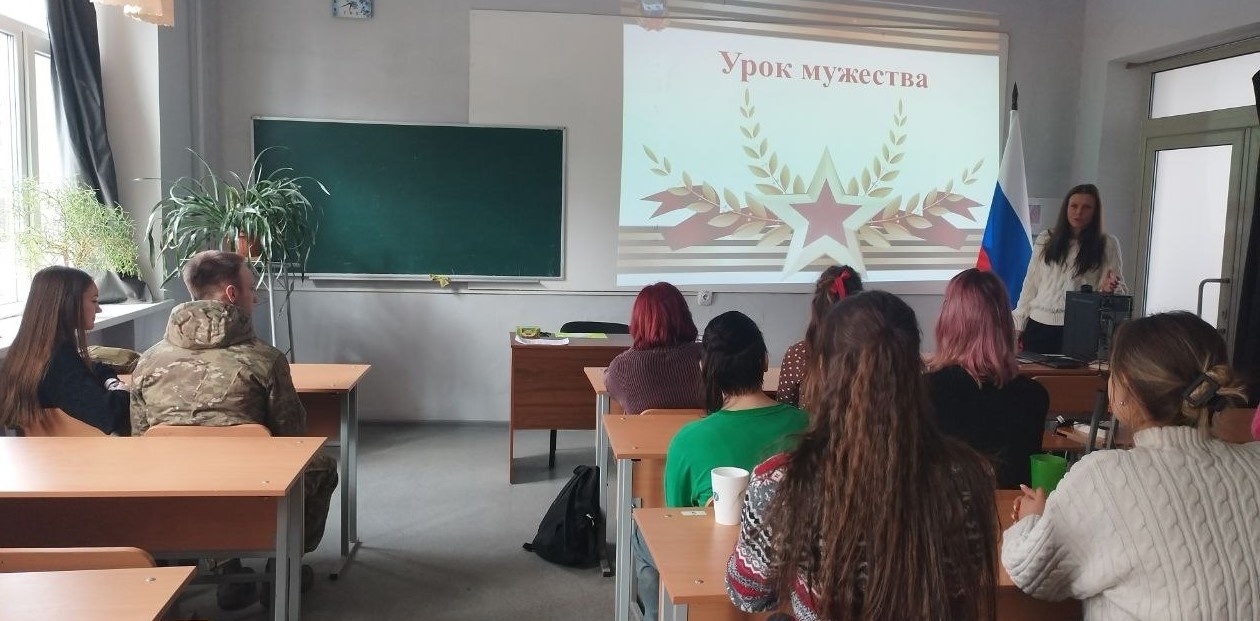 Участник специальной военной операции провел урок мужества со студентами в неформальной обстановке, а будущие живописцы и дизайнеры студенты задали интересующие вопросы, услышали фронтовые истории, передали свои Письма солдатам.