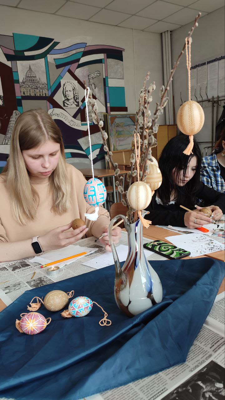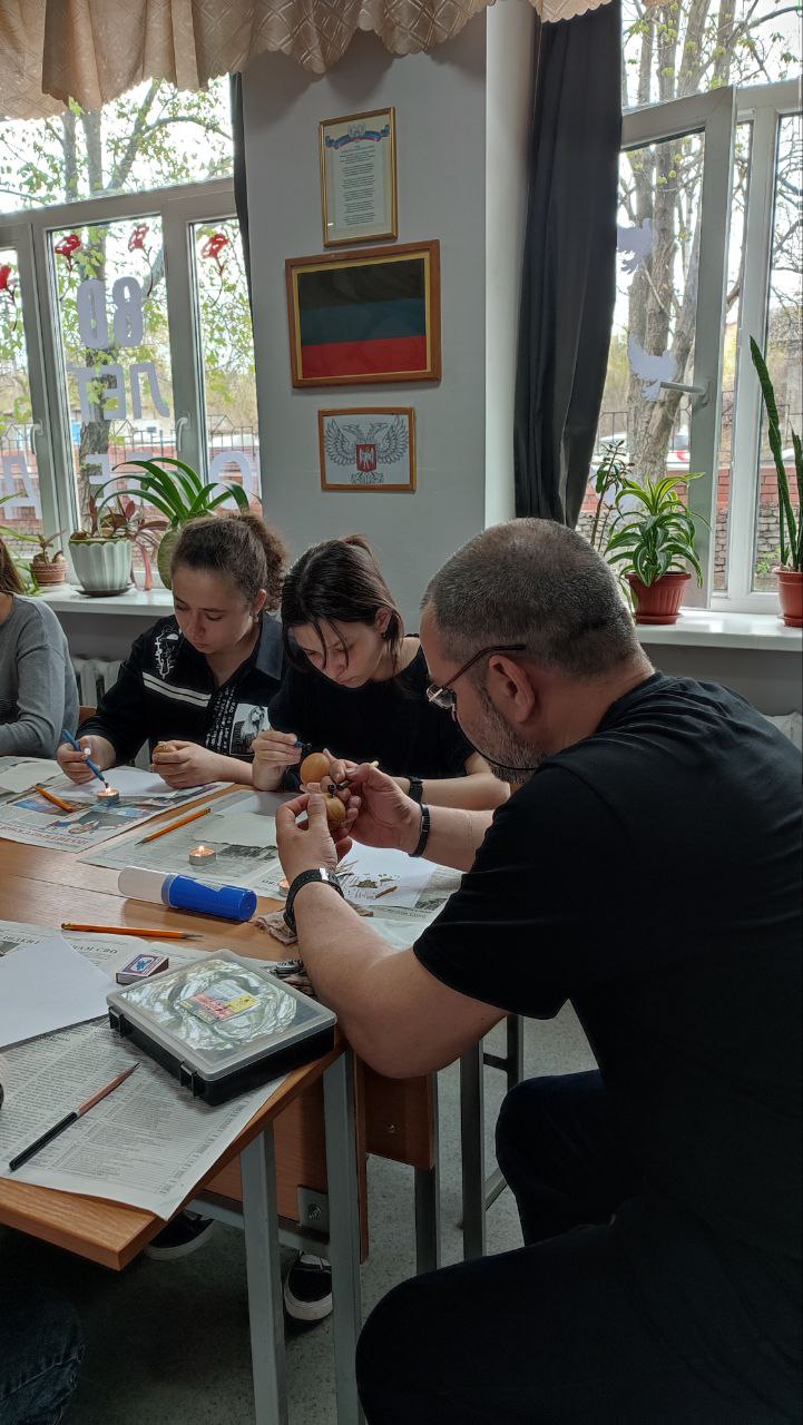 В преддверии светлого Праздника Пасхи, в Донецком художественном колледже состоялся мастер-класс по созданию писанки. Преподаватель Евгений Викторович Кидин познакомил участников – студентов 2-4 курса – с традициями и символикой писанкарства, техникой выполнения росписи. В ходе мастер-класса участники вместе с педагогом создали писанки, погрузившись в атмосферу творчества и предстоящего Праздника.