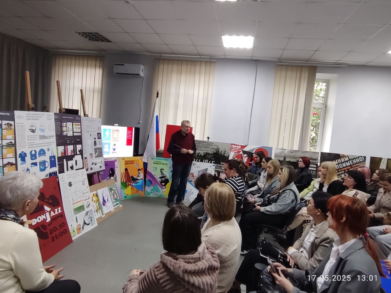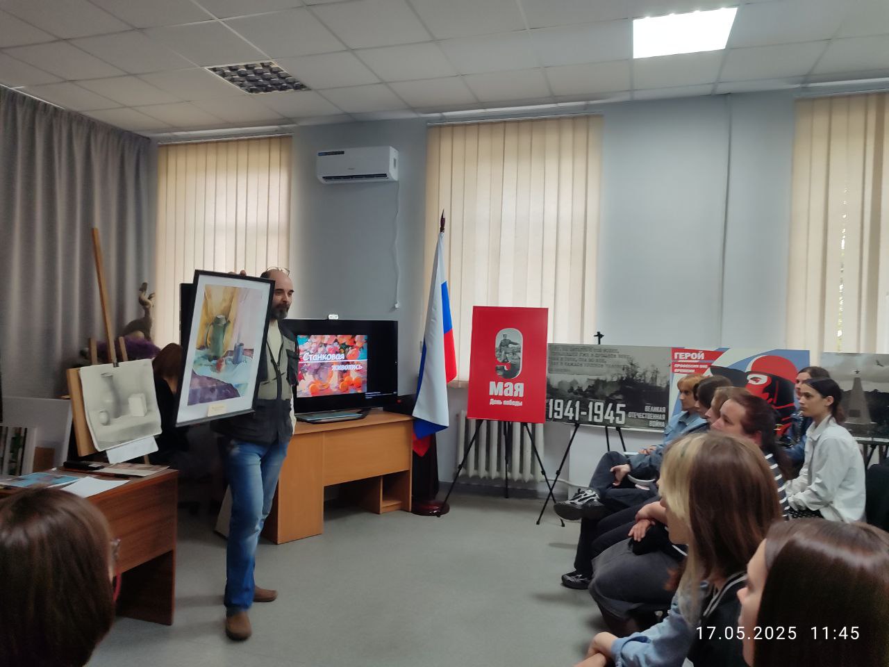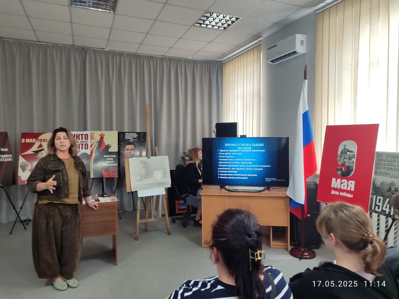 Перед участниками выступили педагогические работники колледжа – Горбунова В.В., Дереза В.В., Рязанов В.И., Титов А.В., Петрикина С.В., Комарова В.И. Они рассказали об истории и деятельности Донецкого художественного колледжа, содержании профессиональной подготовки по специальностям 54.02.05 Живопись (по видам) и 54.02.01 Дизайн (по отраслям), программе вступительных экзаменов по рисунку, живописи и композиции, особенностях вступительной кампании 2025 года. Участники ознакомились с учебно-творческими работами студентов колледжа, посетили выставку плакатов, посвящённых 80-летию Победы в Великой Отечественной войне.