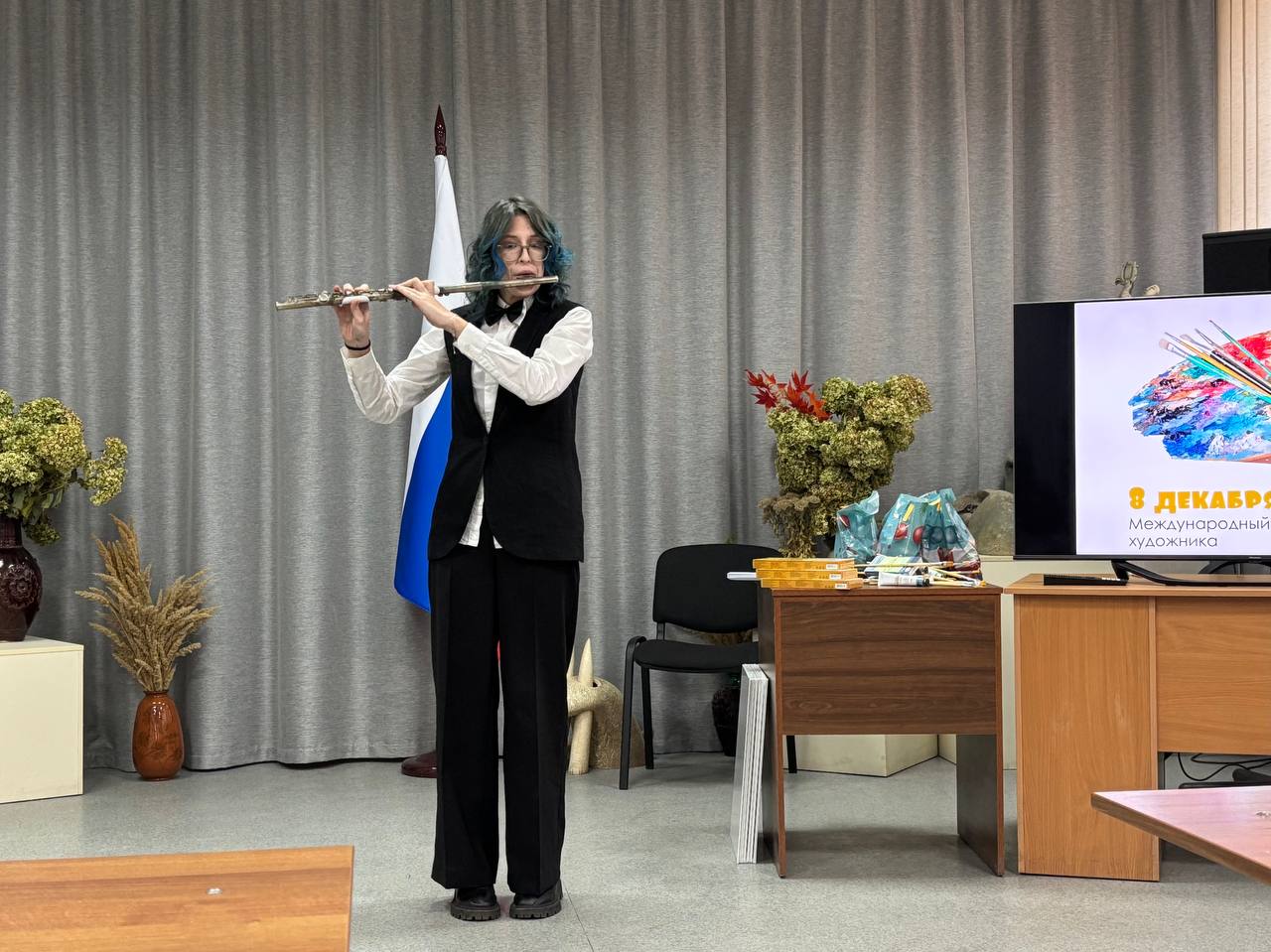 Студенческий совет колледжа подготовил концертную программу. Студентка Князева Вита исполнила на флейте композицию Джеймса Ласта «Одинокий пастух», Михалёва Алиса прочитала стихотворение «Рисуют дети…», а музыкальная группа студентов 3 курса исполнила под гитару песню Булата Окуджавы «Живописцы».
