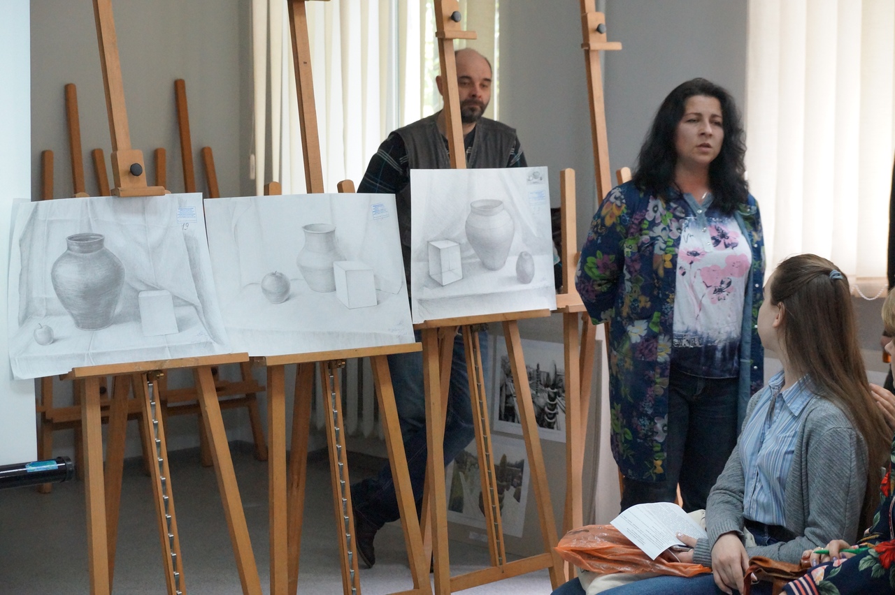Для участников Проекта была подготовлена широкая культурная и информационная программа. Они ознакомились с действующими в Колледже выставками - дипломных работ и проектов; лучших работ по академическому рисунку по итогам 1 семестра 2018-2019 учебного года; творческих работ студентов «Городские мотивы»; авторских работ студентов 1 курса «Здравствуйте, это Мы»; методической выставкой по итогам пленэрной практики «Лето глазами художника». Участников Проекта ознакомили с работами по дисциплинам «Рисунок» и «Живопись», которые были выполнены студентами 1 курса: потенциальные абитуриенты увидели пространство, динамику и направления профессионального роста студентов Донецкого художественного колледжа. Каждый участник Проекта получил памятку по методике выполнения заданий вступительных творческих испытаний, приглашение на День открытых дверей и контакты Колледжа.